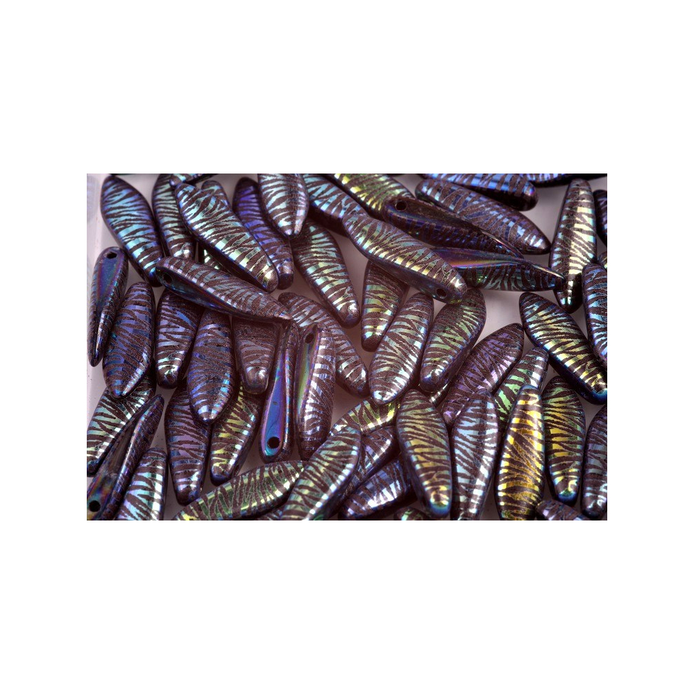 České skleněné korálky jazýčky 5 x 16 mm Průtah: 0,7 mm Balení: 20 ks Barva: OPAQUE BLUE/GREEN...