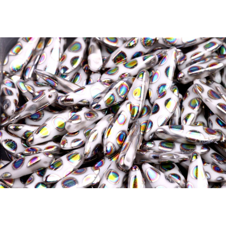 České skleněné korálky jazýčky 5 x 16 mm Průtah: 0,7 mm Balení: 20 ks Barva: WHITE OPAL Kód...