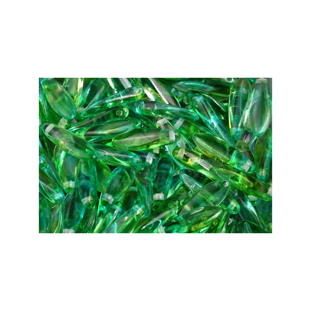 České skleněné korálky jazýčky 5 x 15 mm Průtah: 0,7 mm Balení: 20 ks Barva: krystal Materiál:...
