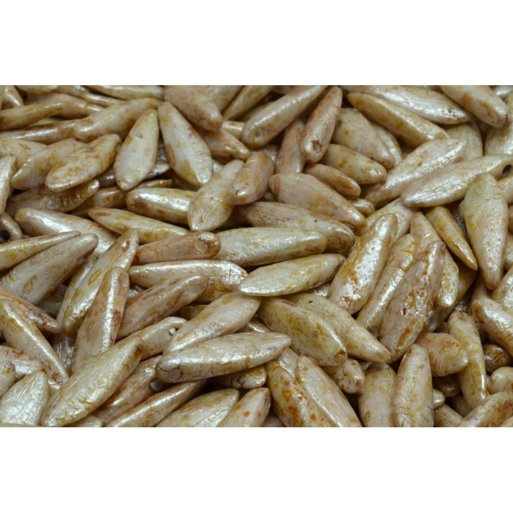 České skleněné korálky jazýčky o rozměrech 16 x 5 mm patří mezi velice oblíbené korálky. Díky svému specifickému tvaru a preciznímu zpracování dodávají každému šperku výrazný a jedinečný vzhled. Umění českého korálkového sklářství, které má v České republice staletou tradici, je známé po celém světě, a tyto korálky to jen potvrzují.