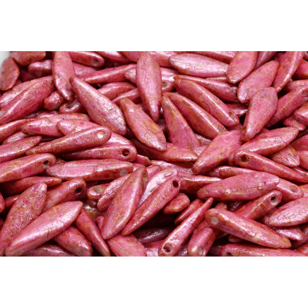 České skleněné korálky jazýčky 5 x 16 mm Průtah: 0,7 mm Balení: 18 ks Barva: růžová Materiál:...