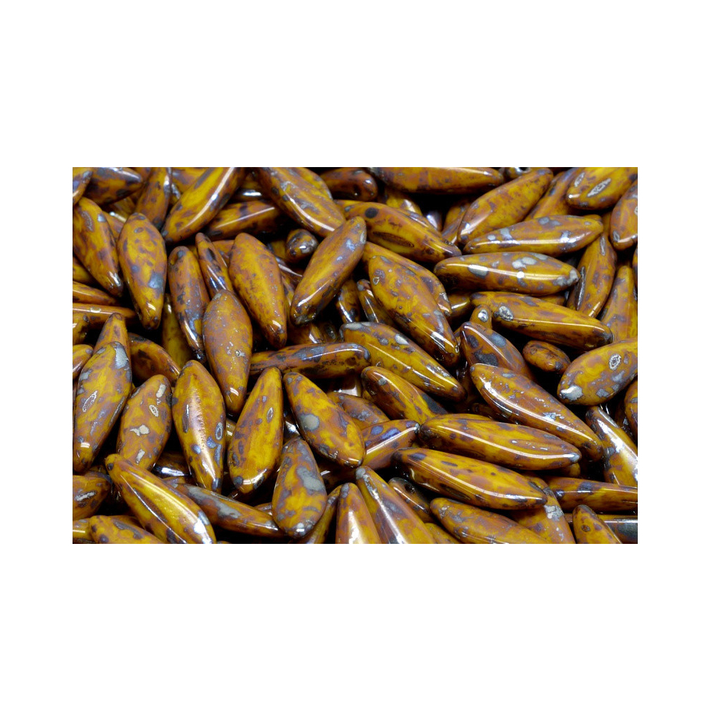 České skleněné korálky jazýčky 5 x 16 mm Průtah: 0,7 mm Balení: 20 ks Barva: CRYSTAL BRONZE FIRE...