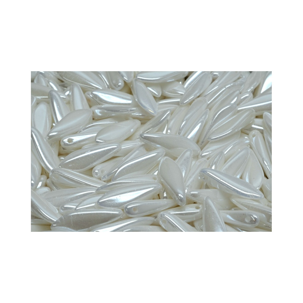 České skleněné korálky jazýčky 5 x 16 mm Průtah: 0,7 mm Balení: 20 ks Barva: WHITE OPAL Kód...