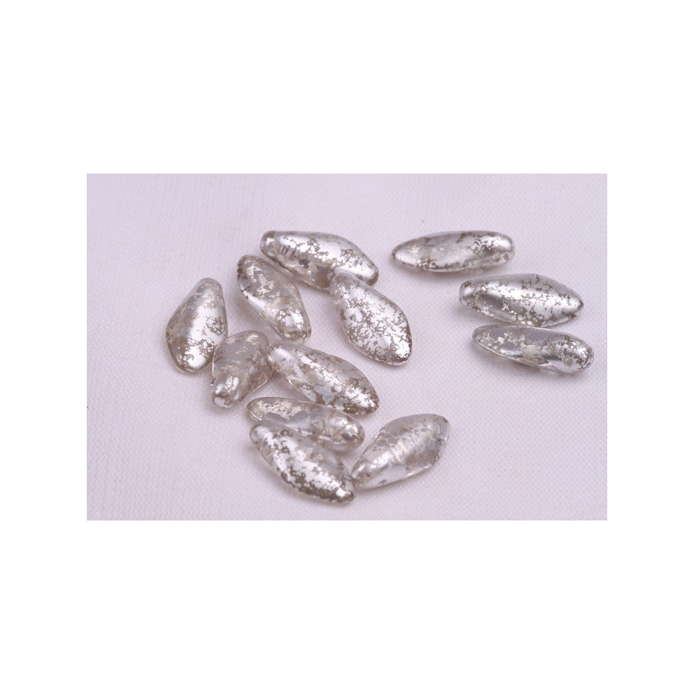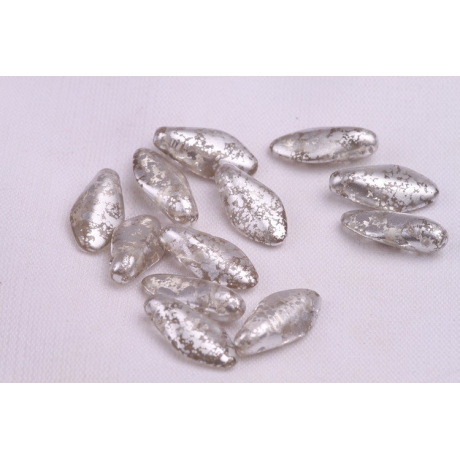 České skleněné korálky jazýčky 7 x 17 mm Velikost průtahu: 0,7 mm Balení: 10 ks Barva: stříbrná...