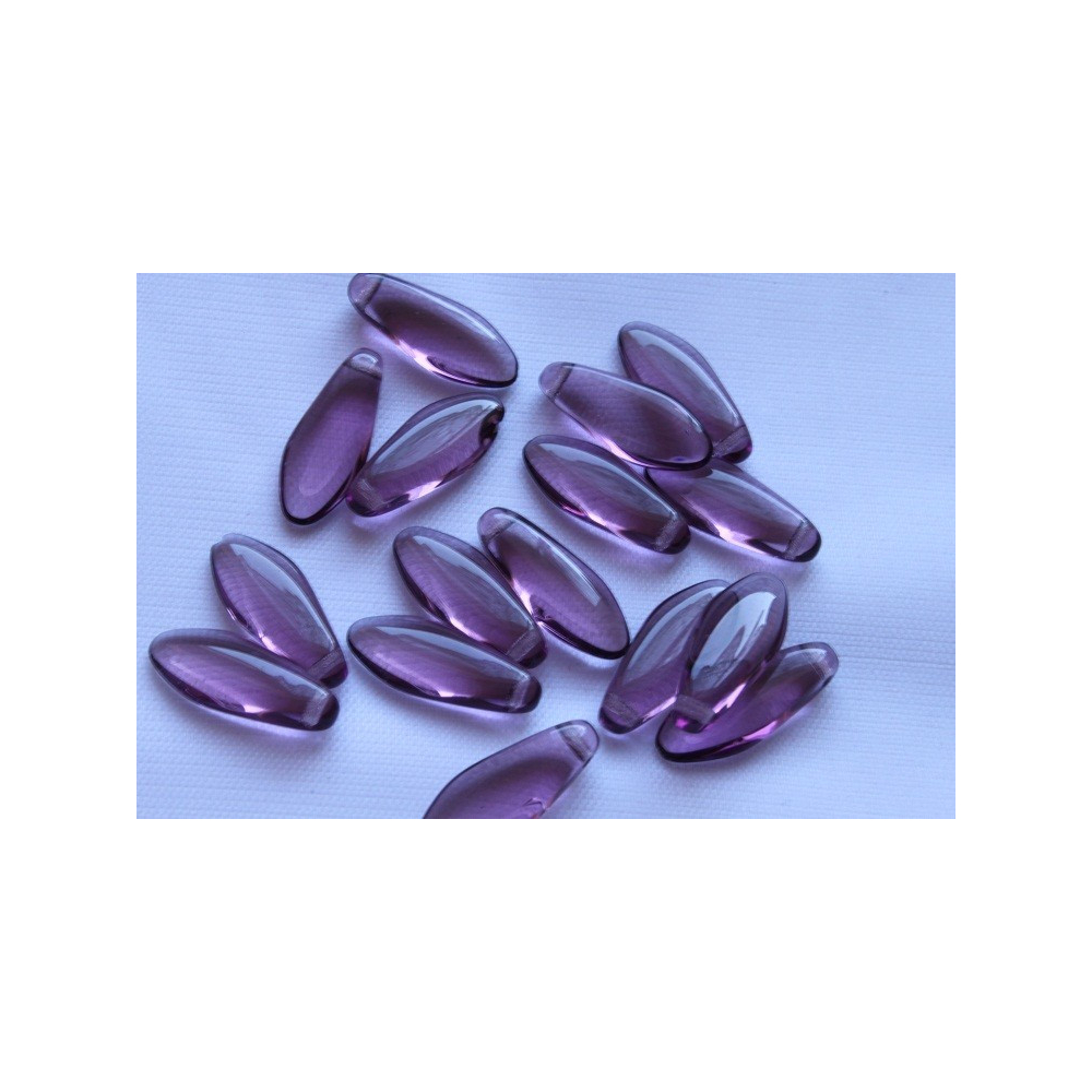 České skleněné korálky jazýčky 7 x 17 mm Velikost průtahu: 0,7 mm Balení: 10 ks Barva: fialová...