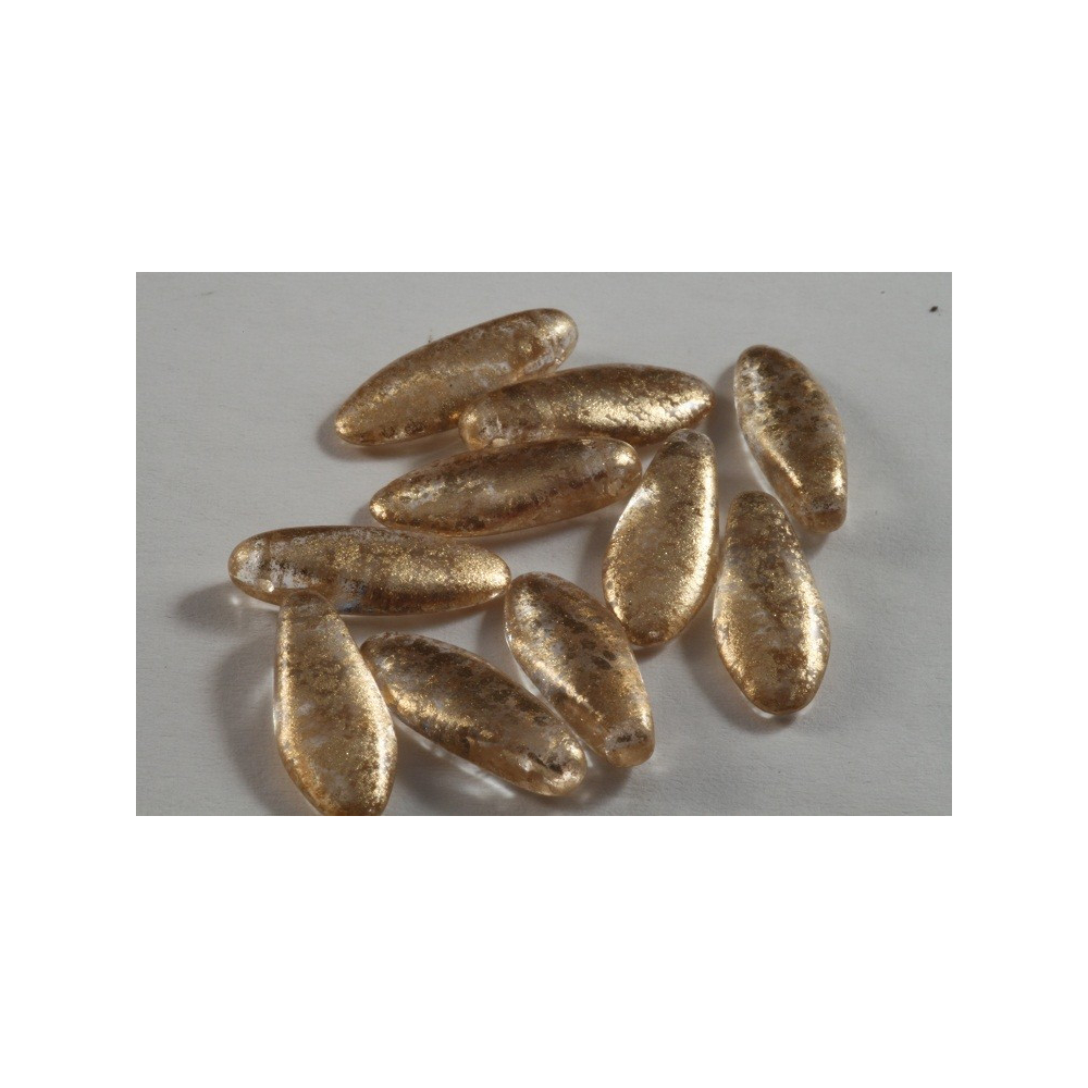 České skleněné korálky jazýčky 7 x 17 mm Velikost průtahu: 0,7 mm Balení: 16 ks Barva: zlatá...