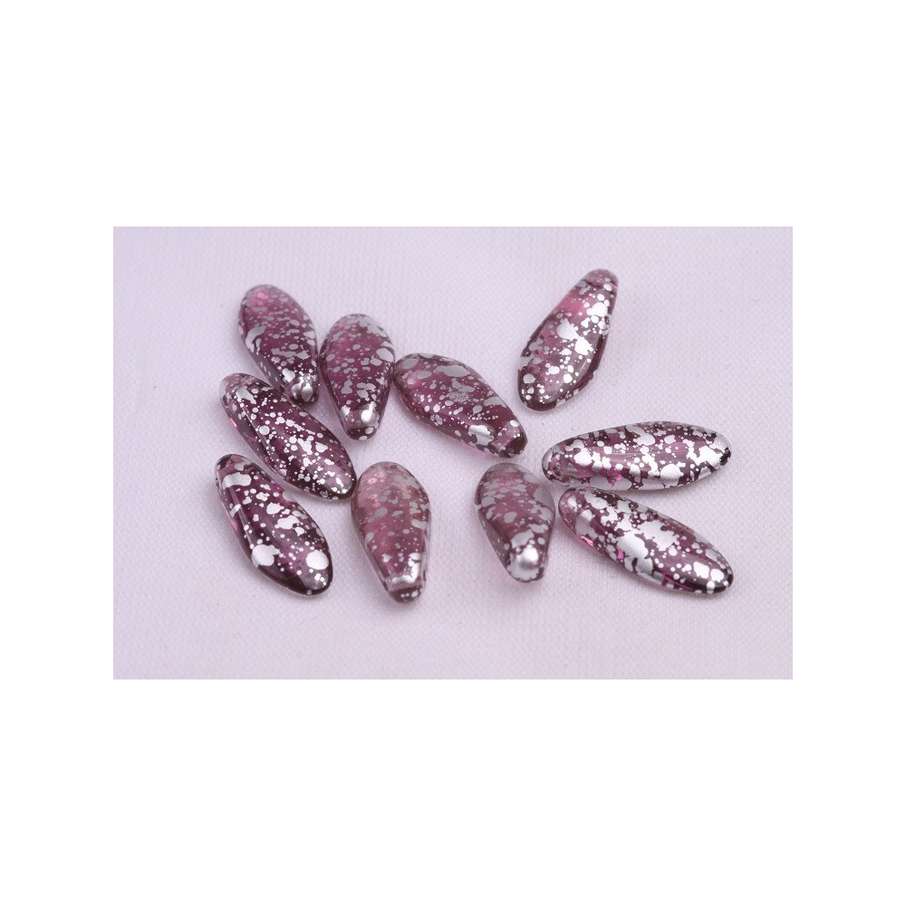 České skleněné korálky jazýčky 7 x 17 mm Velikost průtahu: 0,7 mm Balení: 10 ks Barva: stříbrná...