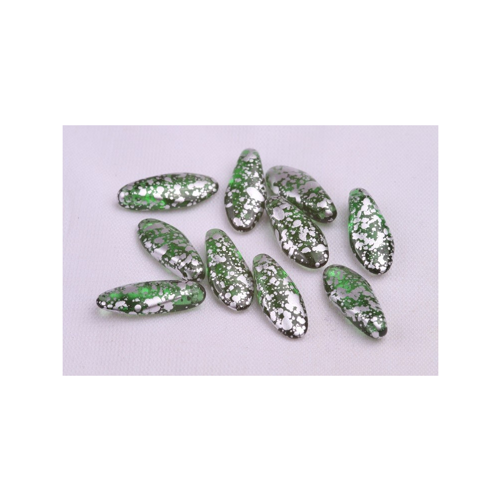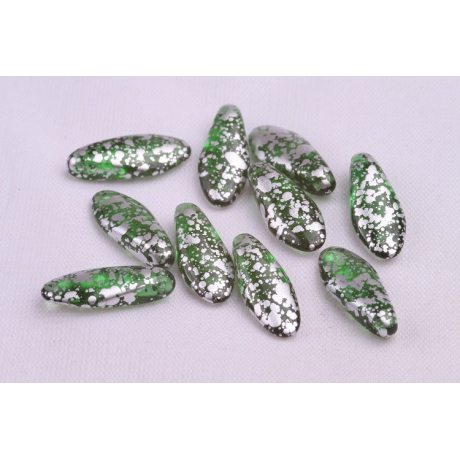 České skleněné korálky jazýčky 7 x 17 mm Velikost průtahu: 0,7 mm Balení: 10 ks Barva: stříbrná...