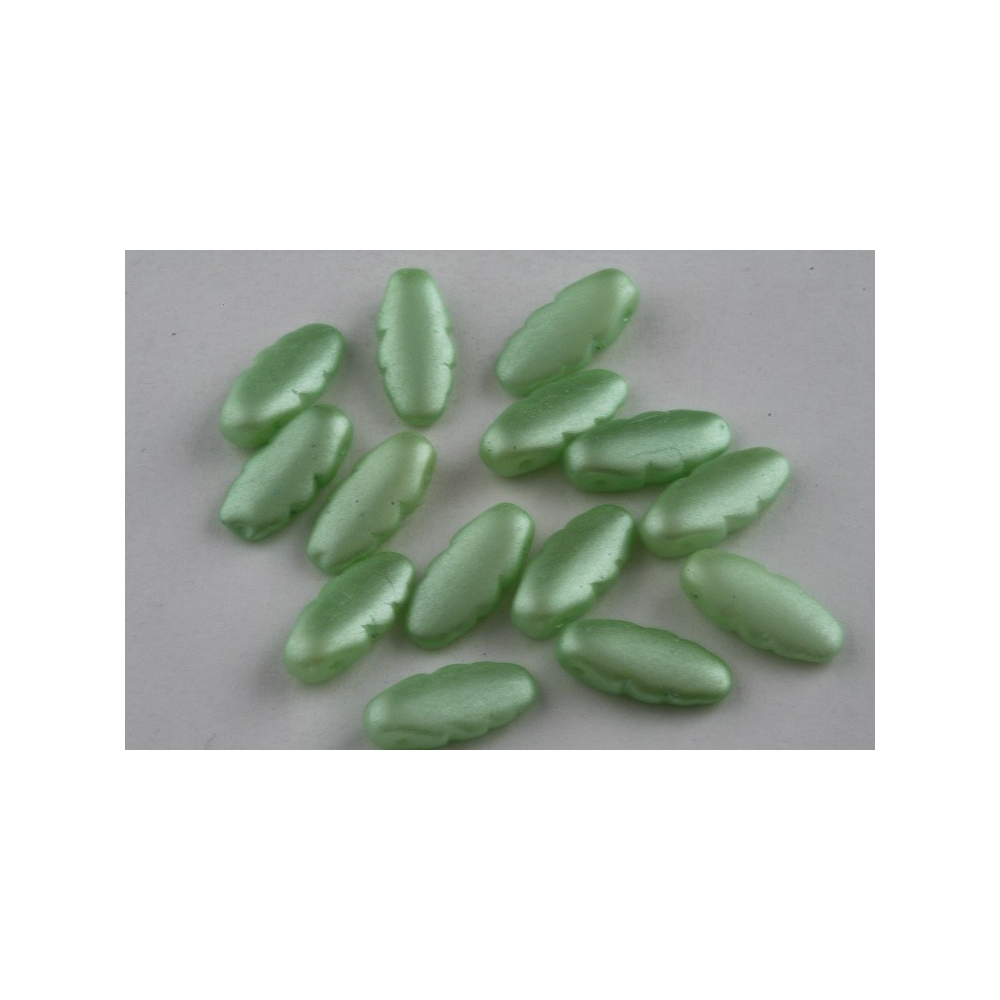 České skleněné korálky jazýčky 3 x 11 mm Velikost průtahu: 0,7 mm Balení: 50 ks Barva: zelená...