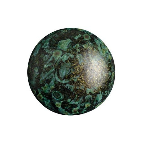 Skleněný kabošon Cabochon par Puca® METALLIC MAT GREEN SPOTTED 23980/65326 Průměr: 14 mm Balení:...