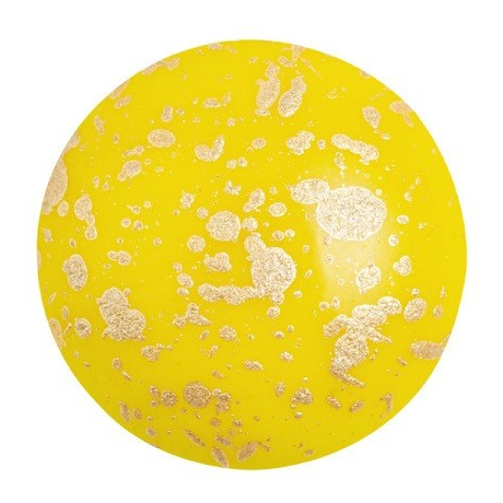 Kabošon par Puca® č. 42 o velkorysém průměru 25 mm upoutá pozornost svou zářivou barevností v provedení Opaque Jonquil Splash s kódem 83120-94401. Tento skleněný prvek s hladkým lesklým povrchem kombinuje sytě žlutý základ s nepravidelnými kovovými stříkanci v barvě zlata. Každý kus je originálem, který se stane dominantním středobodem vašeho autorského šperku, ať už se rozhodnete pro minimalistický závěs nebo složitou kompozici.