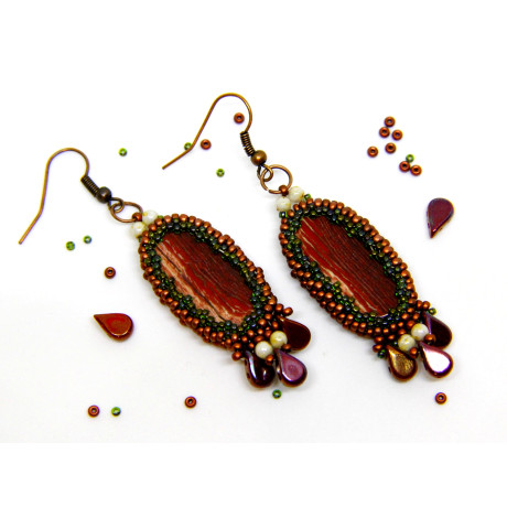 Elegantní design: Náušnice Elengeira vynikají svým propracovaným vzhledem, který kombinuje minerální kabošony s ozdobnými korálky.