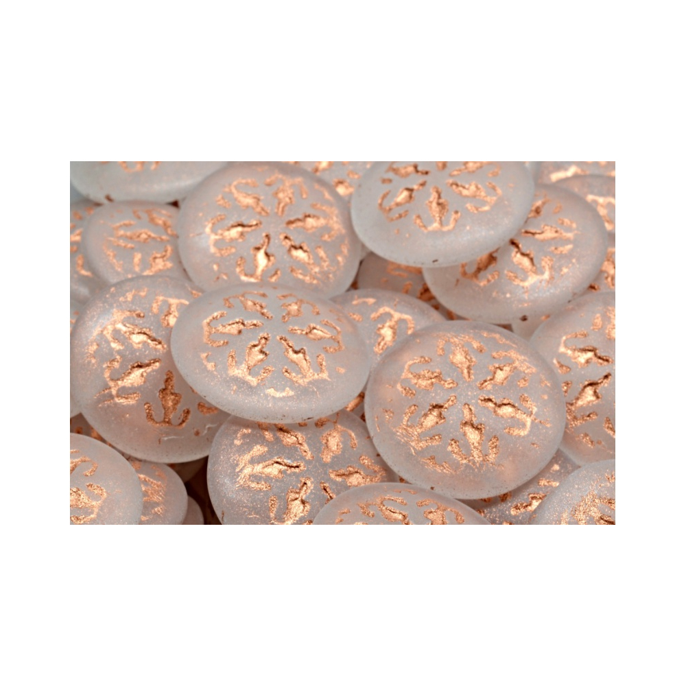 Český skleněný kabošon s vločkou ve velikosti 21 mm od výrobce Rutkovský. Měděná
