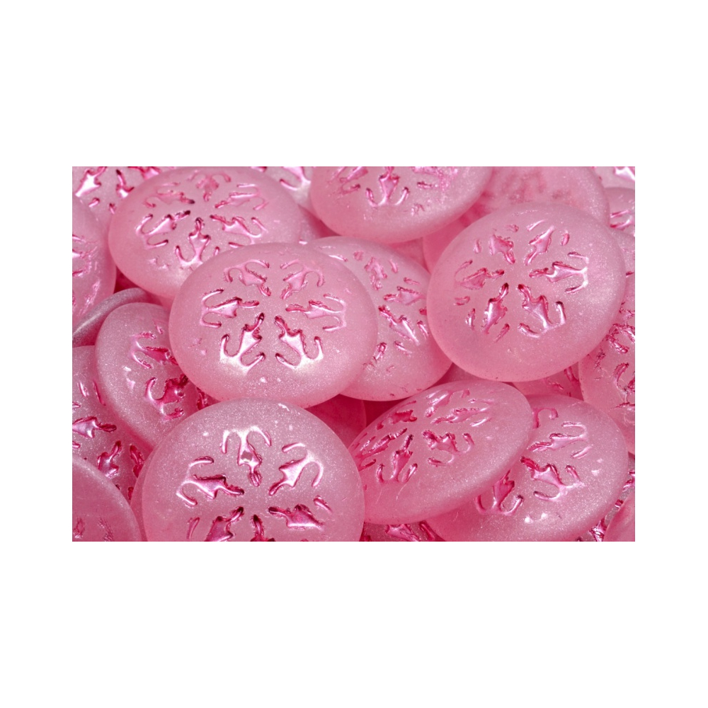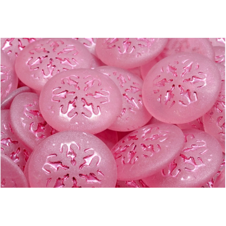 Český skleněný kabošon s vločkou ve velikosti 21 mm od výrobce Rutkovský. Růžová