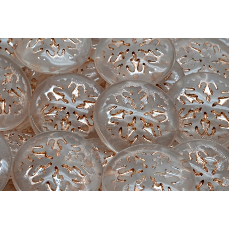 Český skleněný kabošon s vločkou ve velikosti 21 mm od výrobce Rutkovský. Měděná Balení: 1 ks