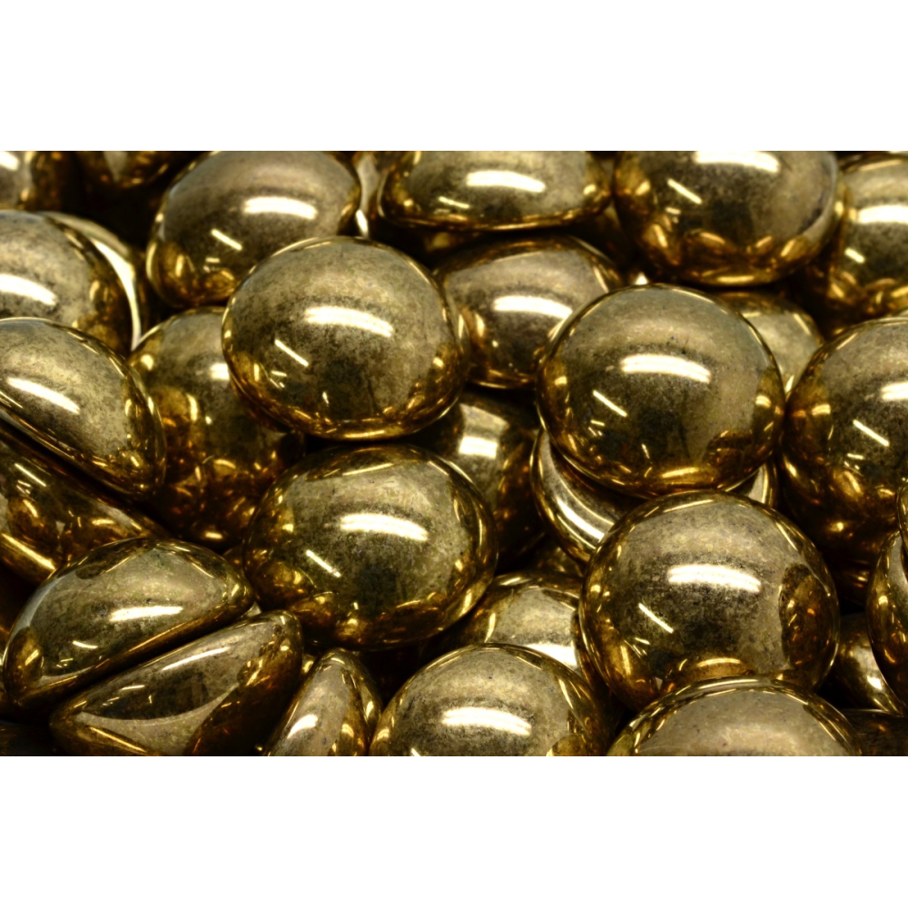 Zlatý medailon s vintage nádechem vytvoříte snadno, pokud jako centrální prvek zvolíte tento výrazný kousek. Skleněný kabošon v barvě Jet Gold Bronze o průměru 16 mm je ideální pro obšívání drobným rokajlem nebo vlepení do kovového lůžka, čímž vznikne luxusní brož či dominantní prvek náhrdelníku. Kovový lesk na tmavém podkladu dodává šperku hloubku a starožitný vzhled.