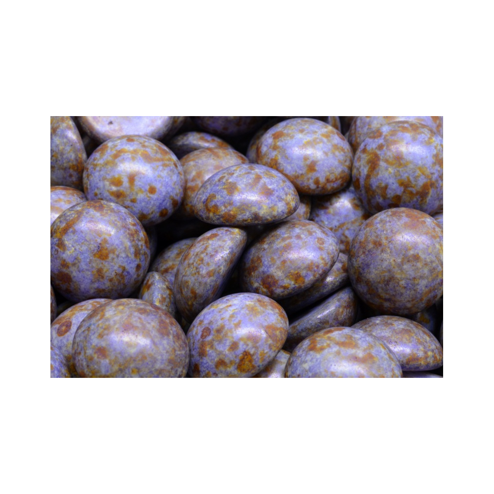 Fialový základ s jemným kropenatým efektem typu Picasso dává vyniknout ručně mačkanému skleněnému kabošonu o průměru 16 mm. Tento polotovar pochází z dílny rodinné firmy Rutkovský, která se specializuje na tradiční české sklářství a precizní zpracování každého kusu. Povrchová úprava s názvem Lavender Herbs & Spices věrně imituje texturu přírodních minerálů, což z tohoto komponentu činí ideální prvek pro luxusní autorské šperky s nádechem historie.