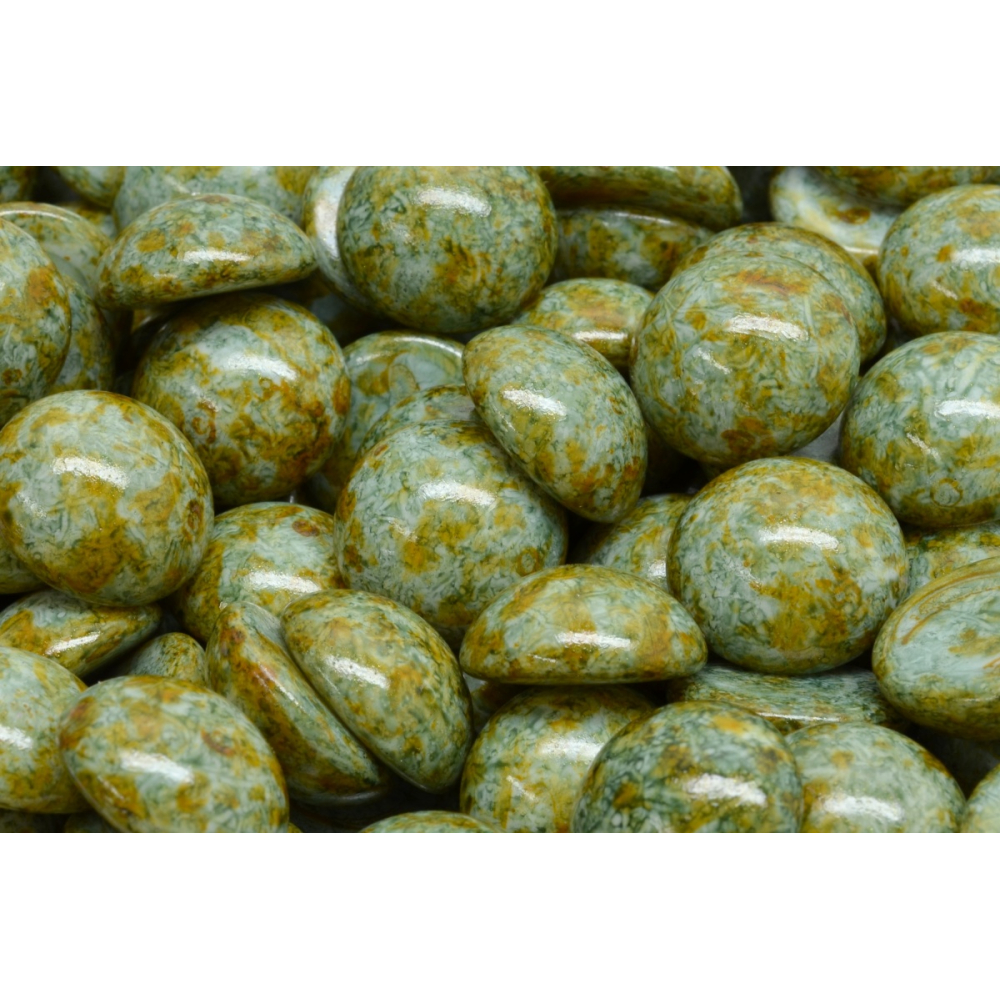 Kombinování s dalšími tvary jako jsou Bell Flower Beads nebo mačkané kuličky v matném provedení vytvoří ve vašem šperku zajímavý texturální kontrast. Zelená a béžová barva s efektem bylinek krásně ladí s bronzovými nebo měděnými kovovými komponenty, čímž podtrhuje rustikální charakter celého díla. České skleněné korálky v tomto provedení jsou aktuálním trendem v boho-chic bižuterii, kde dominují přírodní barevné palety a neotřelé povrchové úpravy.