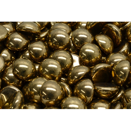 Zlatohnědý odstín Jet Gold Bronze s vysokým kovovým leskem definuje tento 12 mm skleněný kabošon z dílny rodinné firmy Rutkovský. Tradiční české sklářství se zde projevuje v precizním zpracování a jedinečné formě, která je výsledkem ručního lisování skla. Tato povrchová úprava dodává šperkům hloubku a luxusní vzhled, přičemž bronzová barva zůstává nadčasovým prvkem v jakémkoliv designu náušnic, broží nebo náhrdelníků.
