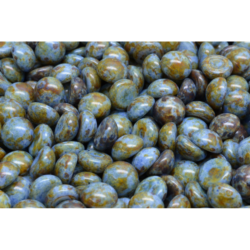 Zemitý odstín divoké šalvěje s jemnou patinou vdechuje tomuto skleněnému kabošonu neopakovatelný přírodní charakter. Tento ručně mačkaný polotovar pochází z dílny rodinné firmy Rutkovský, která v severočeské sklářské oblasti udržuje tradiční české řemeslo po generace. Každý Cabochon Beads o průměru 8 mm vyniká svou unikátní kresbou, která připomíná strukturu drahých kamenů s efektem Picasso.