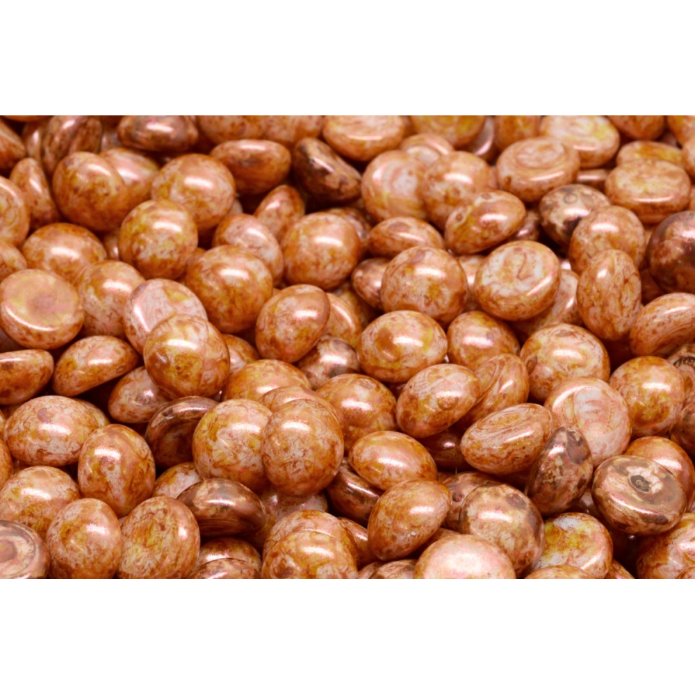 Teplé skořicové tóny s jemným mramorováním definují tento skleněný kabošon, který přináší do šperkařské tvorby přírodní eleganci. Povrchová úprava typu Picasso v kombinaci s jemným leskem vytváří unikátní vizuální hloubku, díky které vynikne každý detail vašeho designu.