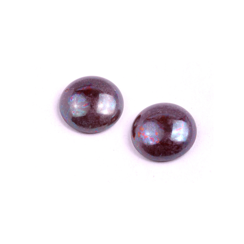 Hluboký vínový odstín s fascinujícími metalickými odlesky definuje tento skleněný kabošon o průměru 18 mm, který pochází z dílny rodinné firmy Rutkovský. Každý kus představuje vrchol tradičního českého sklářství, kde se precizní ruční lisování skla potkává s moderními požadavky na designové šperky. Povrchová úprava s jemným měňavým efektem dodává materiálu hloubku, která vynikne při každém pohybu nositelky.