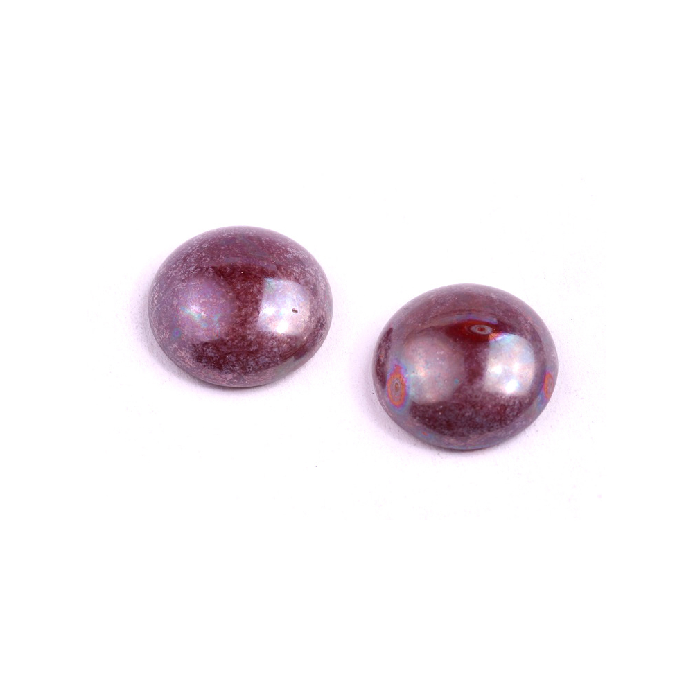 Vínový tóny a tajemné iridiscentní odlesky tohoto skleněného prvku přímo vybízejí k vytvoření dominantního přívěsku nebo výrazné brože. Tento skleněný kabošon o průměru 18 mm pochází z dílny rodinné firmy Rutkovský, která se pyšní tradičním českým sklářstvím a ruční výrobou. Hluboká barva s jemným efektem dodá vašemu šperku hloubku a profesionální vzhled, který vynikne zejména při kombinaci se zlatým nebo bronzovým rokajlem.
