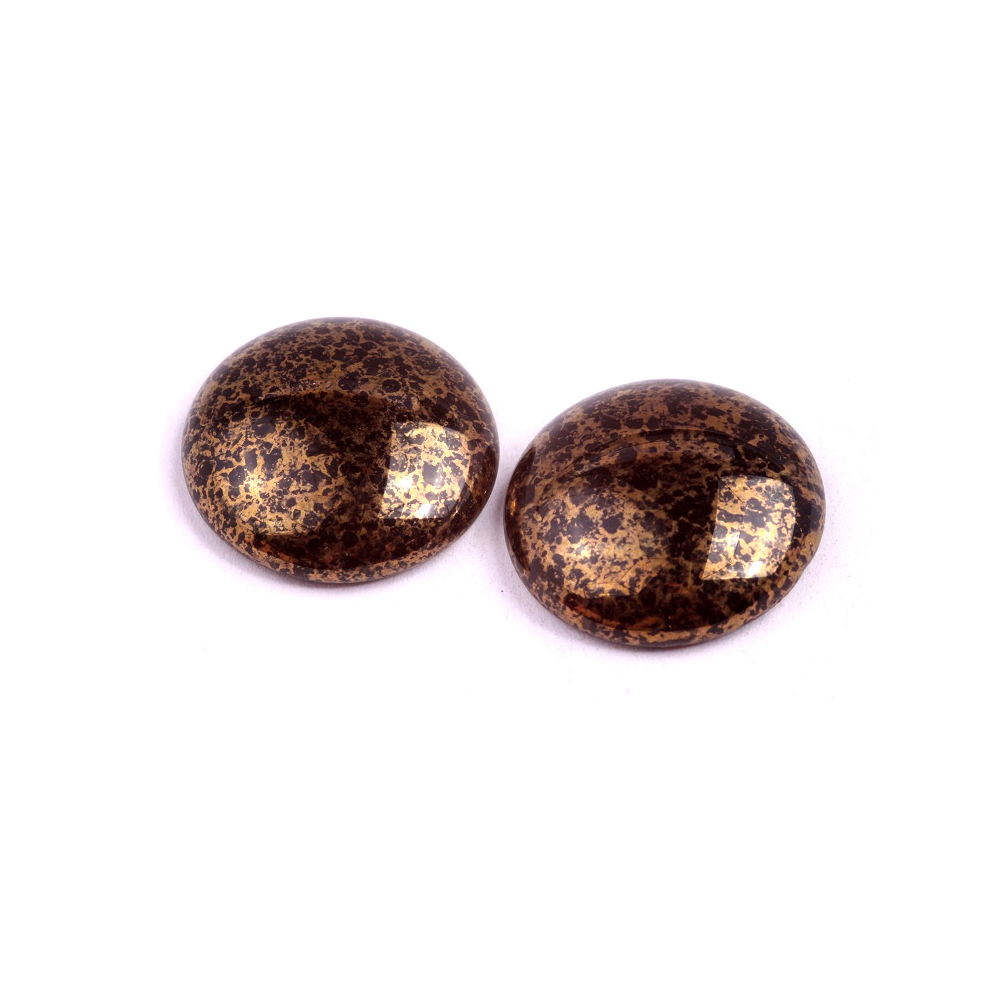 Bronzová barva s fascinujícími metalickými odlesky dominuje tomuto velkorysému kabošonu, který pochází z dílny rodinné firmy Rutkovský. Na rozdíl od běžných strojových komponentů, tyto české skleněné korálky nesou stopy tradičního sklářského řemesla a ručního lisování, což zajišťuje jejich tvarovou stálost a hloubku dekoru. Kabošony o průměru 25 mm s tímto specifickým povrchem Picasso v bronzovém provedení nabízejí jedinečnou hru světla a organický vzhled, kterého levnější plastové náhražky nikdy nedosáhnou.