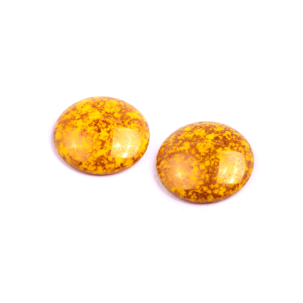 Žlutý skleněný kabošon s unikátním mramorováním představuje vrcholný kousek z dílny rodinné firmy Rutkovský. Oproti levným plastovým imitacím vyniká tento ručně mačkaný polotovar hloubkou barev a precizním zpracováním, které přímo navazuje na tradiční české sklářství. Rozměr 25 mm z něj činí ideální dominantní prvek pro nápadné autorské šperky, kde plně vynikne jeho hladký, vysoce lesklý povrch s nepravidelným hnědým žíháním v úpravě Picasso.