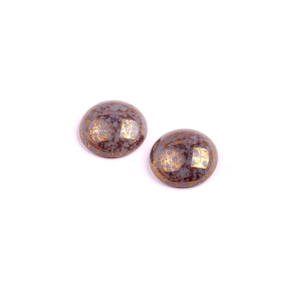 Šedá barva v kombinaci s luxusním zlatým žíháním vytváří z těchto kabošonů naprostý unikát pro vaši tvorbu. Ručně mačkané skleněné kabošony od rodinné firmy Rutkovský nesou pečeť poctivého českého řemesla, které se v Jizerských horách dědí po generace a představuje to nejlepší z naší sklářské tradice.