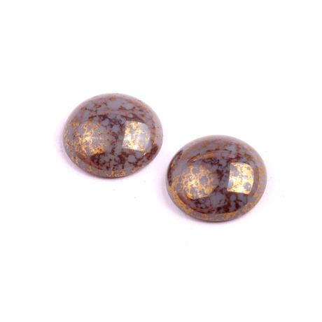 Povrchová úprava s kovovým efektem na neutrálním podkladu působí velmi elegantně a připomíná přírodní polodrahokamy s inkluzemi vzácných kovů. Tyto české skleněné korálky ve tvaru Cabochon Beads mají průměr 18 mm, což je ideální velikost pro dominantní prvek v nápaditém šperku.