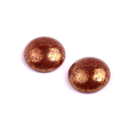 Bronzové odlesky na sytě červeném podkladu dělají z tohoto kousku unikátní materiál pro náročné tvůrce, kteří hledají vizuální hloubku ve svých designech. Každý skleněný kabošon s průměrem 18 mm vyniká specifickým metalickým vzorem, který připomíná drahé kameny a dodává šperkům luxusní nádech. Povrchová úprava typu Picasso v kombinaci s kovovými tóny vytváří dynamický efekt, který reaguje na každý dopad světla.
