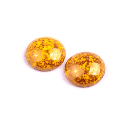 Zářivě žlutá barva v kombinaci s hnědým mramorováním vytváří z tohoto kousku nepřehlédnutelný prvek pro vaši tvorbu. Skleněný kabošon o průměru 18 mm pochází z dílny rodinné firmy Rutkovský, kde se klade důraz na tradiční české sklářství a precizní ruční výrobu. Každý kus je díky specifickému dekoru originálem, který dodá vašim šperkům hloubku a profesionální vzhled.
