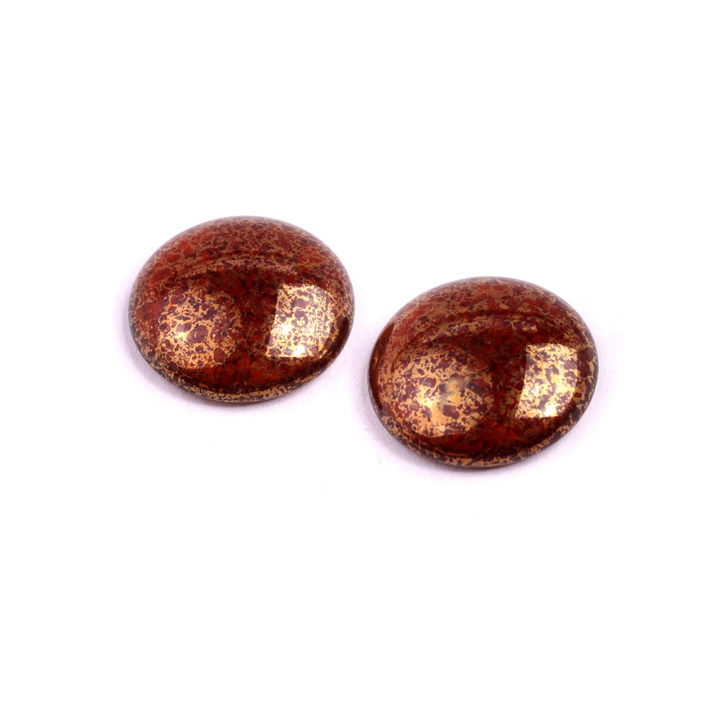 Terakotově hnědý odstín s bohatým bronzovým žíháním definuje tento skleněný kabošon o průměru 25 mm, který vznikl v dílně rodinné firmy Rutkovský. Tradiční české sklářství se zde projevuje v precizním ručním lisování, kdy každý kus získává svůj nezaměnitelný charakter a hloubku barvy díky jedinečné technologii nanášení dekoru. Tento komponent je ideální pro milovníky ruční výroby šperků, kteří hledají spojení historie a moderního designu v kvalitním skleněném provedení.