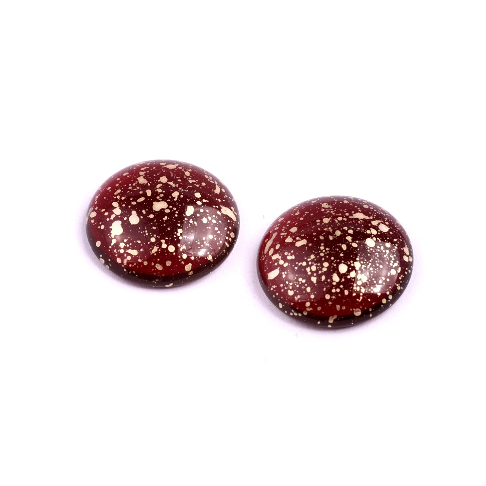 Sytě vínová barva s nádechem luxusního zlata se stane dominantou vašeho nového šperku, ať už se rozhodnete pro tvorbu výrazného přívěsku nebo originální spony do vlasů. Tento skleněný kabošon o průměru 25 mm představuje vrchol tradičního řemesla, které kombinuje hluboký odstín burgundské barvy s jemným zlatým dekorem. Díky svému hladkému povrchu a preciznímu tvaru skvěle odráží světlo, což dodává hotovému dílu profesionální a nadčasový vzhled.
