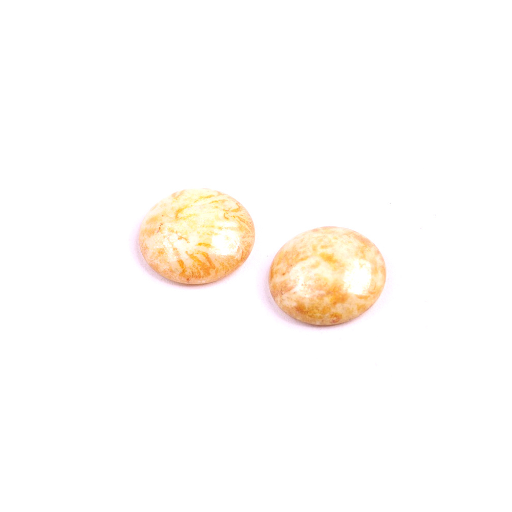 Béžová barva s jemným zlatavým mramorováním a precizní výbrus skleněného kabošonu o průměru 18 mm představují vrchol tradičního českého řemesla. Tento komponent od rodinného výrobce Rutkovský vyniká dokonale hladkým, vysoce lesklým povrchem a konzistentním tvarem, který je nezbytný pro náročné zlatnické i bižuterní techniky. Každý kus nese stopu ruční práce, což zaručuje originalitu každého vytvořeného šperku.