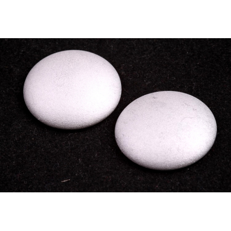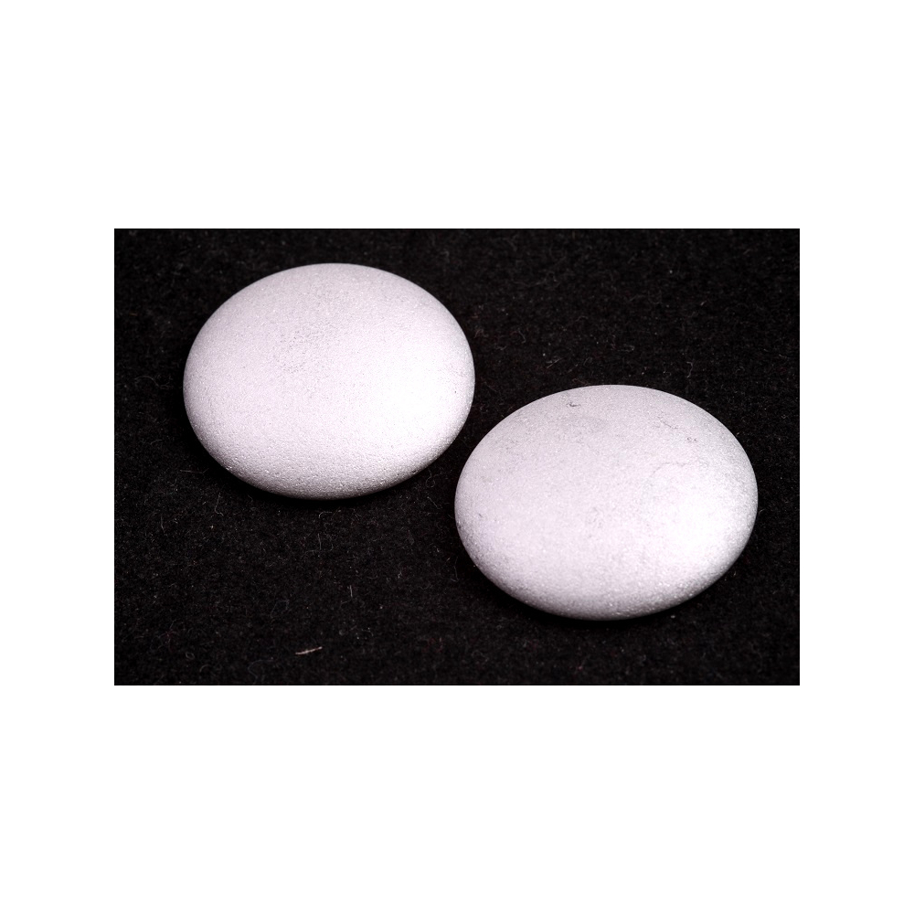 Stříbrná metalická povrchová úprava na tomto velkém 25 mm skleněném kabošonu dodává každému šperku moderní industriální nádech i nadčasovou eleganci. Tento ručně mačkaný komponent od rodinné firmy Rutkovský reprezentuje to nejlepší z tradičního českého sklářství a je ideálním základem pro korálkovou výšivku (bead embroidery) nebo cínování. Díky své velikosti a hladkému klenutému povrchu skvěle poslouží jako dominantní centrální prvek v náhrdelnících, luxusních brožích či nápadných sponách do vlasů, kde plně vynikne jeho jemně matný, saténový odlesk.
