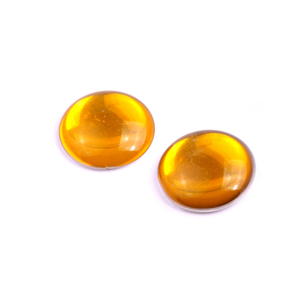 Medový odstín tohoto velkého skleněného prvku okamžitě upoutá pozornost svou hloubkou a hřejivým odleskem. Skleněný kabošon o průměru 25 mm představuje ideální středový kámen pro výrazné autorské šperky, které vyžadují precizní zpracování a vysoký lesk.