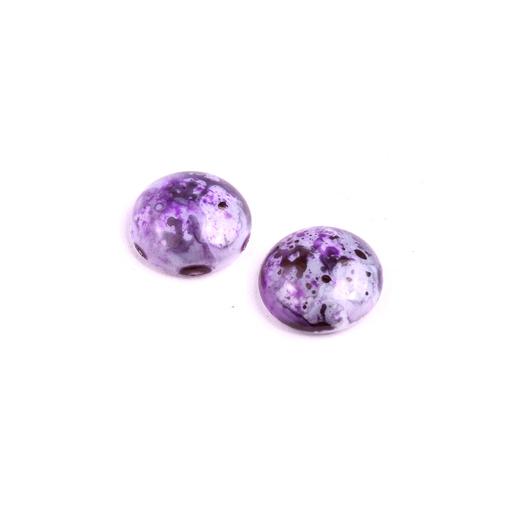 Fialový odstíny s unikátním mramorováním dělají z tohoto skleněného kabošonu o průměru 18 mm nepostradatelný prvek pro každou kreativní duši. Tento polotovar pochází z dílny rodinné firmy Rutkovský, která v srdci severních Čech udržuje tradiční české sklářství při životě. Každý kus je výsledkem precizní ruční práce, což zaručuje, že váš autorský šperk bude mít naprosto jedinečný a neopakovatelný charakter.
