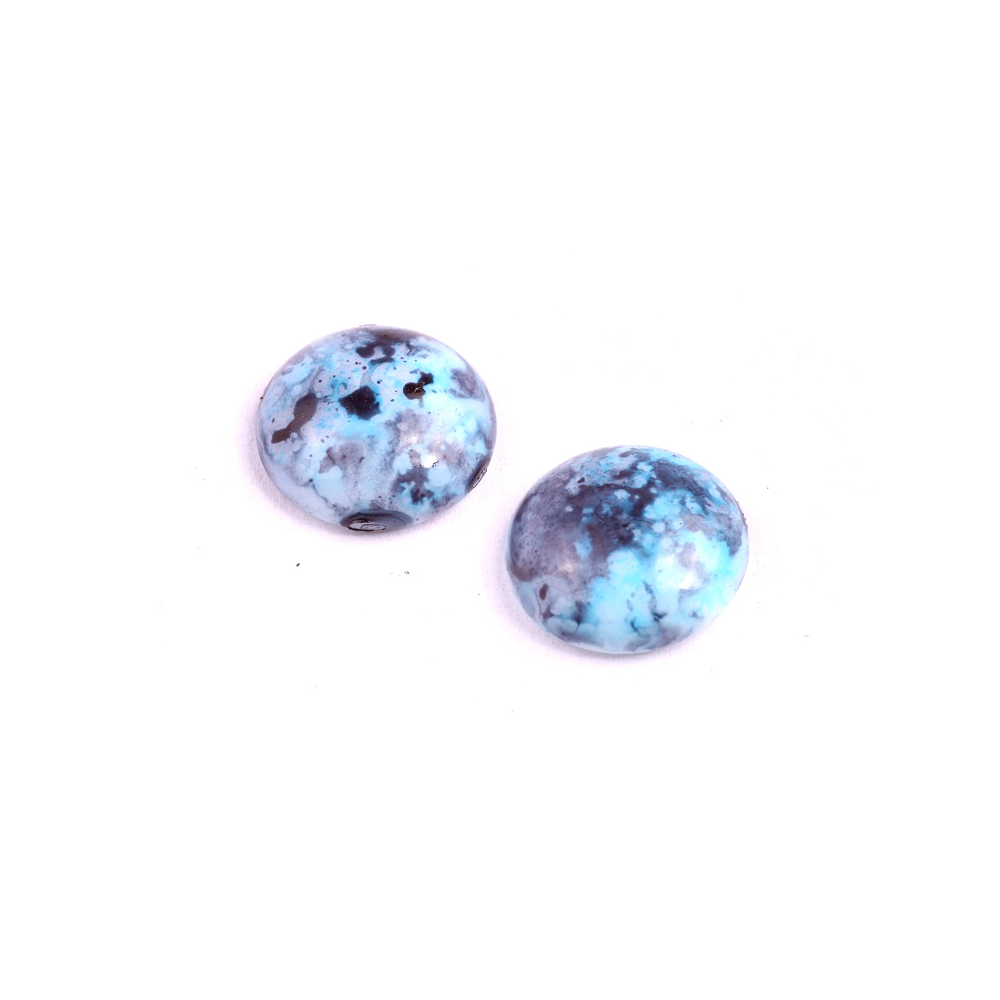 Tyrkysová barva s hlubokým mramorováním vnáší do vašich kreativních projektů nádech oceánu a organických přírodních textur. Tento skleněný kabošon o průměru 18 mm pochází z dílny rodinné firmy Rutkovský, která udržuje tradiční české sklářství skrze precizní ručně mačkané skleněné korálky. Výrazná povrchová úprava s tmavými pigmenty vytváří neopakovatelný vizuální efekt, který skvěle doplňuje techniky jako beadweaving nebo soutache při tvorbě autorských šperků.