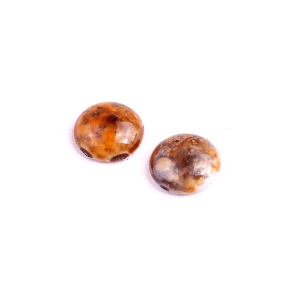 Hnědé zemité odstíny s výrazným Picasso finišem zdobí tento skleněný kabošon o průměru 18 mm z dílny rodinné firmy Rutkovský. Každý kus reprezentuje tradiční české sklářství a precizní ruční výrobu, díky které získáváte unikátní komponent pro své kreativní projekty. Hladký lesklý povrch s mramorováním dokonale vynikne při obšívání rokajlem Preciosa nebo vlepování do kovových lůžek pro tvorbu autorských náušnic a přívěsků.