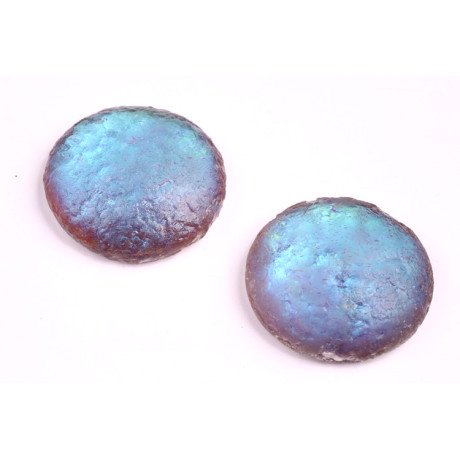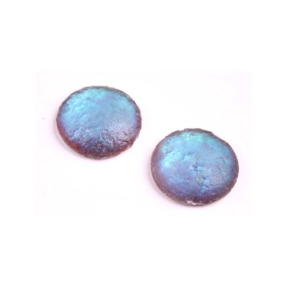 Výrazný medailon s centrálním prvkem, který okamžitě upoutá pozornost, vytvoříte právě s tímto skleněným kabošonem. Jeho velikost 25 mm a unikátní etched povrch s iridiscentními odlesky v tyrkysové a fialové barvě dodají šperku nádech mystiky a hloubky. Textura povrchu připomíná přírodní minerály, což z něj činí ideální volbu pro šperkařky hledající neotřelé komponenty.
