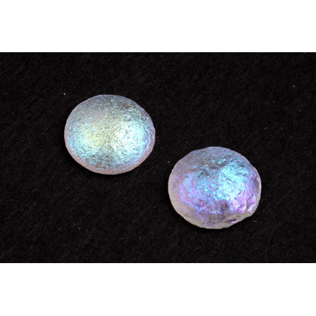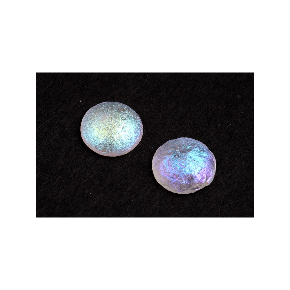 Křišťálově čistý základ s magickou hrou barev definuje tento skleněný kabošon o průměru 18 mm, který pochází z dílny rodinné firmy Rutkovský. Každý kus představuje poctivé tradiční české sklářství a nese v sobě stopu ruční výroby, která zaručuje jedinečnost každého komponentu. Specifický leptaný povrch s označením etch v kombinaci s povrchovou úpravou 28701 - V láme světlo do fascinujících odstínů modré, tyrkysové a fialové, což z těchto Cabochon Beads činí ideální středový prvek pro náročné projekty, jako je beadweaving nebo technika obšívání korálky. Při práci s ním doporučujeme použít kvalitní rokajl Preciosa v barvách, které podpoří jeho iridescentní odlesky.
