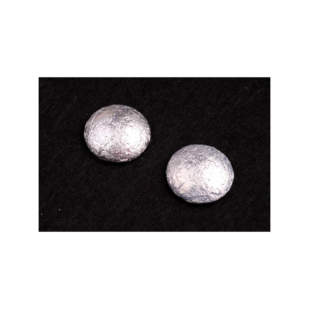 Stříbrný povrchová úprava s efektem leptaného skla definuje tento skleněný kabošon o průměru 18 mm, který pochází z dílny rodinné firmy Rutkovský. Tradiční české sklářství se zde snoubí s precizním ručním lisováním, díky čemuž má každý kus přesné rozměry a stabilní tvar vhodný pro náročné šperkařské projekty. Ruční výroba zaručuje vysokou kvalitu materiálu, který je základem pro profesionální bižuterii a autorskou tvorbu.