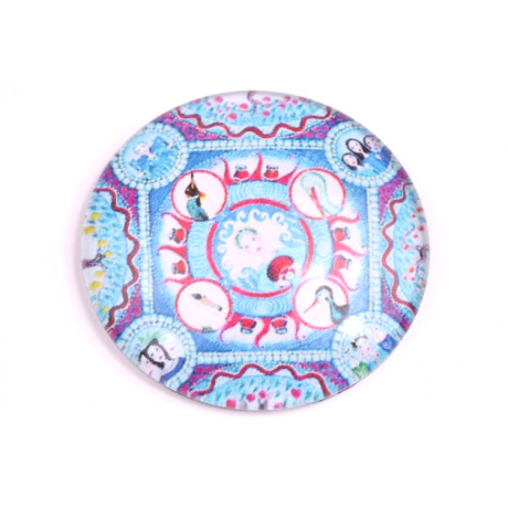 Lesklý třpytivý kulatý kabošon Barva: Bermuda Blue Velikost: 10 mm Materiál: sklo Cena za: 1 ks