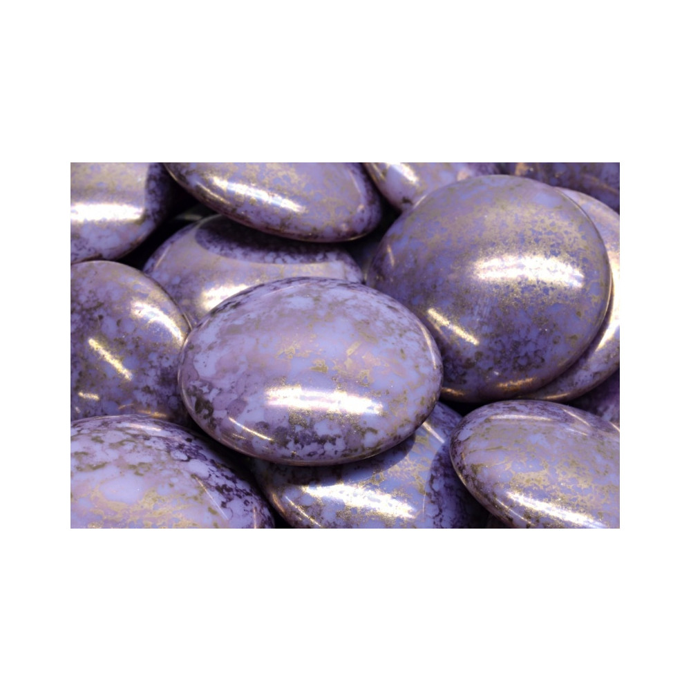 Fialová barva se zlatým mramorováním a precizní zpracování dělají z tohoto skleněného kabošonu o průměru 25 mm ideální centrální prvek pro náročné šperkařské projekty. Každý kus od rodinné firmy Rutkovský v sobě nese tradici českého sklářství, kdy se ruční výroba podepisuje na unikátním vzhledu každého jednotlivého komponentu. Díky hladkému vypouklému povrchu a ploché zadní straně je tento Cabochon Beads perfektní pro vlepování do lůžek nebo obšívání drobným rokajlem.