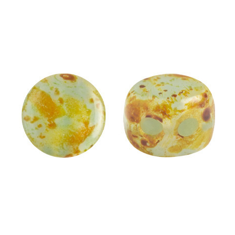 Skleněné mačkané korálky Lipsi® par Puca® - Paris 7 x 4 mm OPAQUE MIX BLUE/GREEN CERAMIC LOOK...