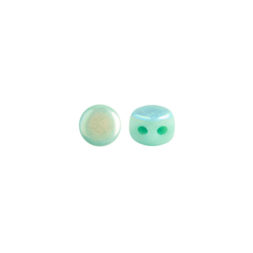 Jemný odstín jadeitu s duhovým efektem Frost Jade AB vyřeší vaše dilema, jak do šperku vnést eleganci i moderní šmrnc zároveň. Mačkané skleněné korálky Kalos® par Puca® o velikosti 4 x 3 mm jsou výsledkem unikátního spojení, které kombinuje vytříbený francouzský design od Annick Puca a precizní českou sklářskou tradici. Tyto dvoudírkové korálky s průtahem 0,8 mm umožňují vícenásobný průchod nití korálkem, což oceníte zejména u konstrukčně náročných šitých šperků, kde je stabilita tvaru klíčovým faktorem pro profesionální výsledek.