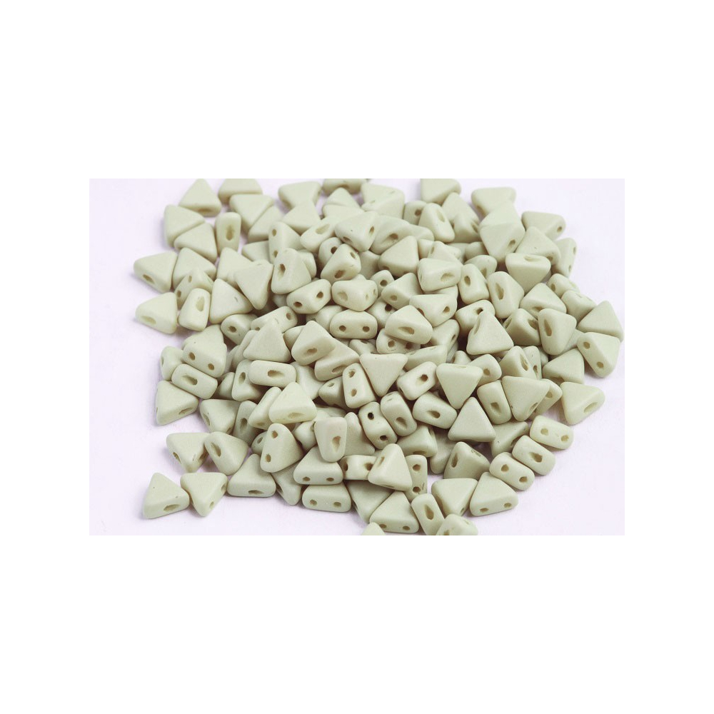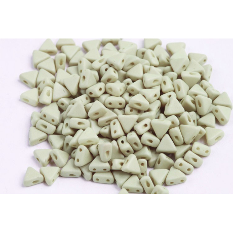 Skleněné trojúhelníkové korálky Kheops® par Puca® 6 x 6 mm OPAQUE LIGHT OLIVINE/BEIGE SILK MAT 02010/29564