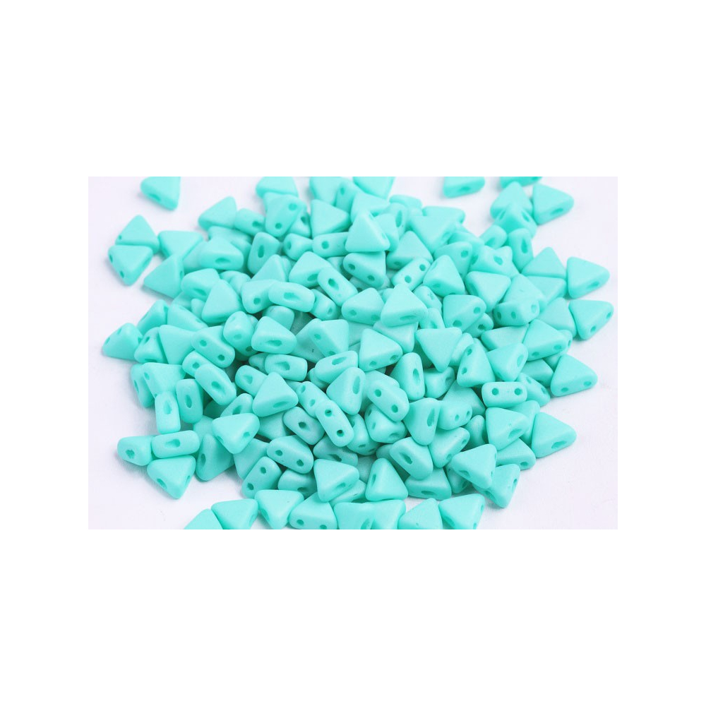 Skleněné trojúhelníkové korálky Kheops® par Puca® 6 x 6 mm OPAQUE GREEN TURQUOISE SILK MAT 02010/29569